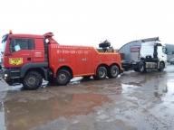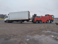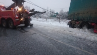 Повышенной сложности эвакуация грузовых автомобилей (постановка на колеса опрокинувшихся автомашин), вытаскивание на дорожное полотно